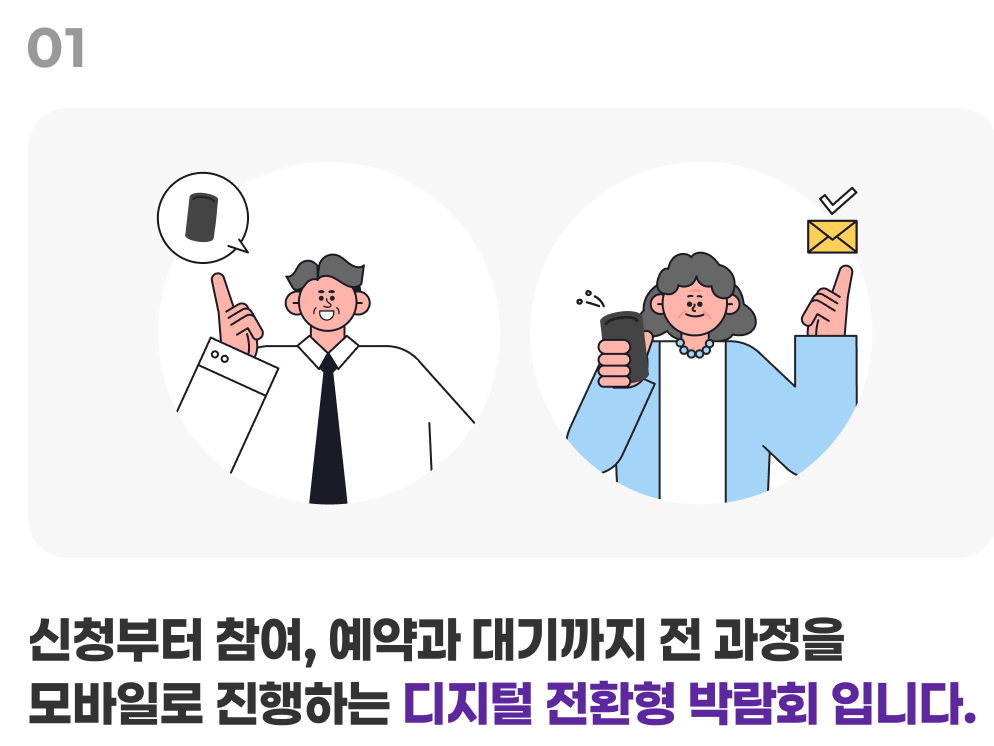 신청부터 참여까지 모바일ㆍ디지털 기반으로 진행되는 박람회입니다. 미리 내용을 확인하시면, 행사를 더 쉽고 즐겁게 참여하실 수 있습니다.