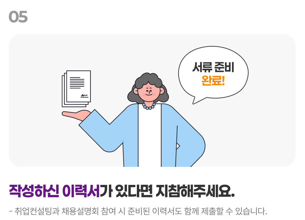 사전 컨설팅 지원: 희망자에게 취업 컨설턴트가 사전 연락하여 맞춤형 이력서·자기소개서 작성 지원 및 기업 추천 제공