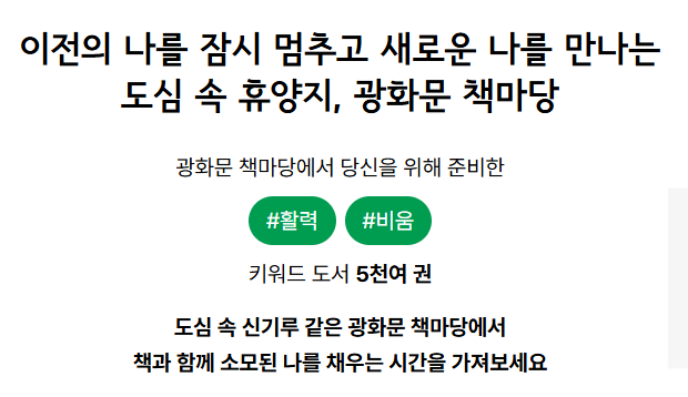 북큐레이션과 체험 프로그램, 포토존까지 갖춘 도심 속 문화 쉼터로 누구에게나 열려 있어요.