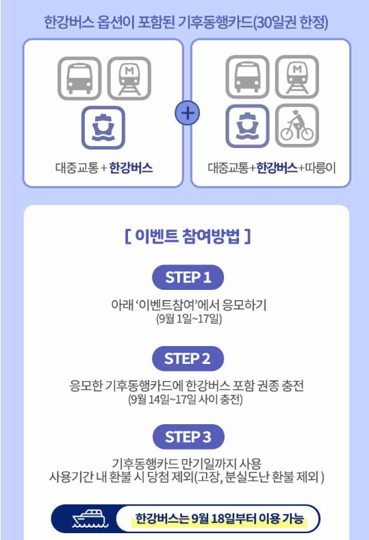 한강버스 개통을 앞두고 9월 1일부터 17일까지 사전충전 이벤트가 진행됩니다.
