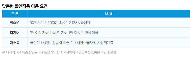 맞춤형 할인은 모든 시민이 자동으로 받을 수 있는 것은 아니며, 대상별로 자격 요건을 확인한 뒤 신청 절차를 거쳐야 합니다.