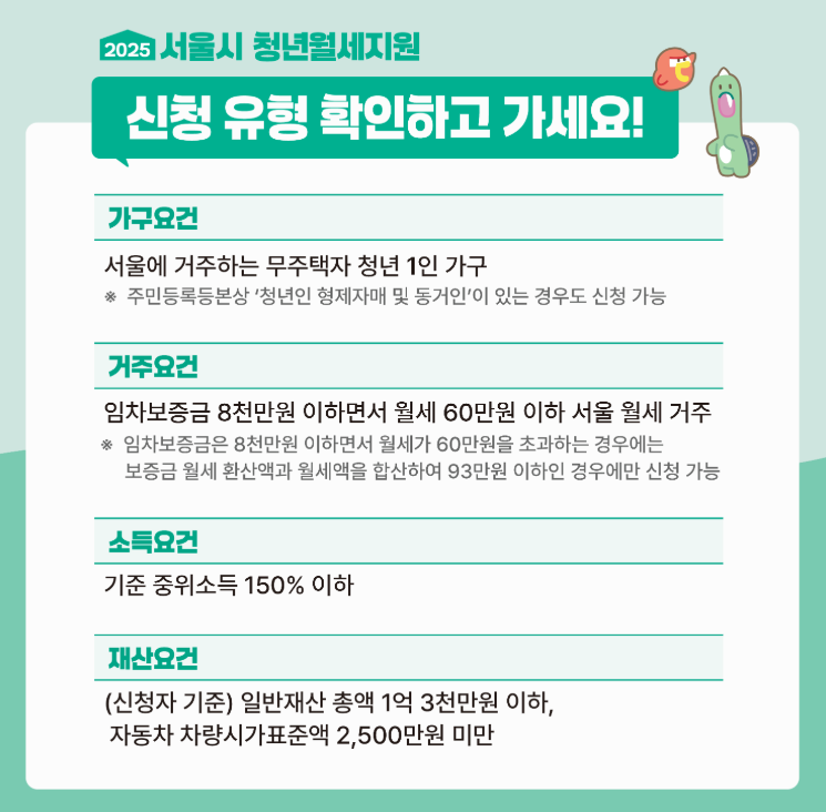 2. 서울시 청년월세지원 신청기간 및 지원내용