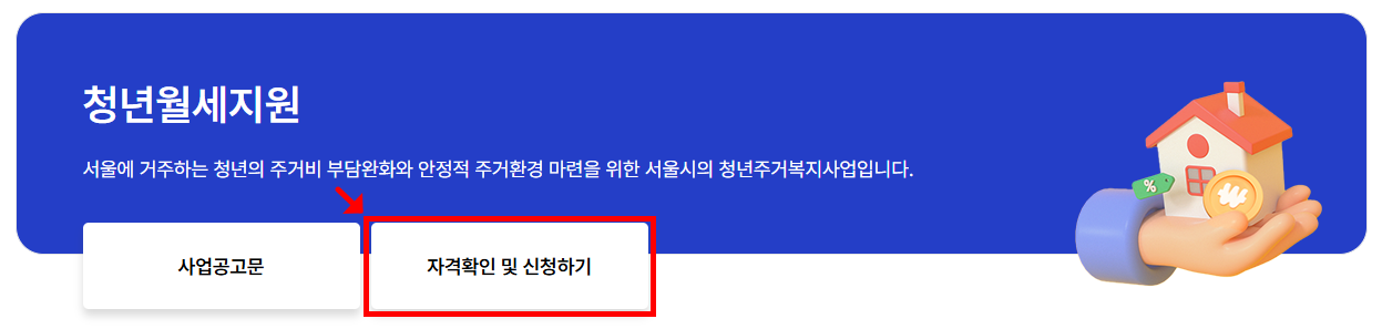 ② 청년월세지원 페이지 자격확인 및 신청하기 버튼 클릭