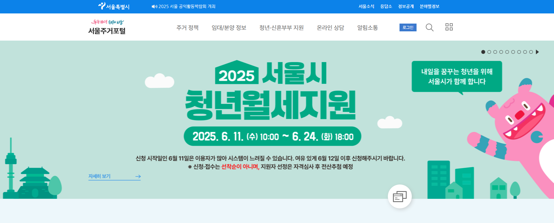 서울주거포털,Home, 서울시 청년월세, 청년 월세지원, 서울주거포털은 서울시의 주거정책 및 분양/임대 정보를 종합적으로 제공합니다. 내게 맞는 서울시의 주거복지 서비스를 찾아보세요.